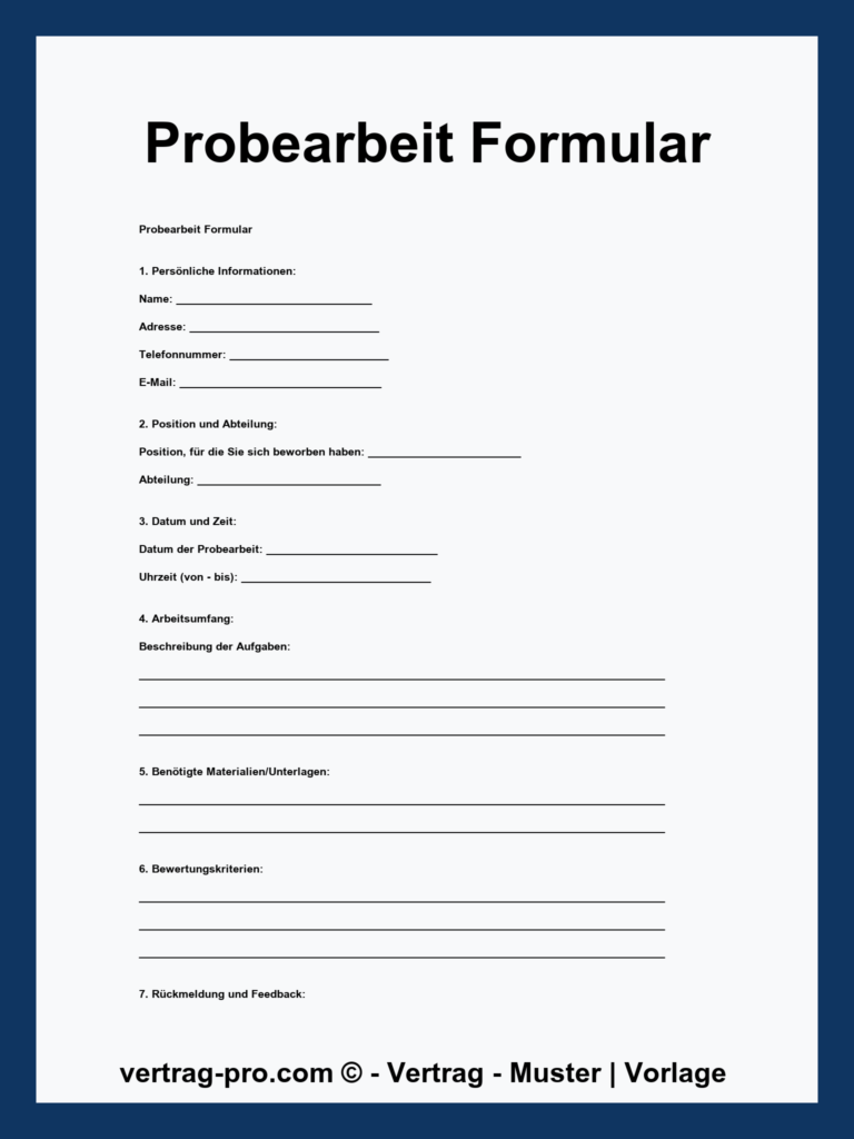 Kostenloses Musterformular für Probearbeiten herunterladen – klärt freiwillige Arbeit ohne Vergütung und regelt wichtige Bedingungen einfach und rechtssicher für Arbeitgeber und Arbeitnehmer.