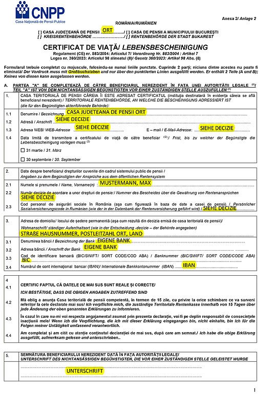 Kostenloses Lebensbescheinigung Formular für Rumänien herunterladen mit einfacher Anleitung zum Ausfüllen der Kreisrentenbehörde und weiteren wichtigen Angaben für die Rentenantragstellung.
