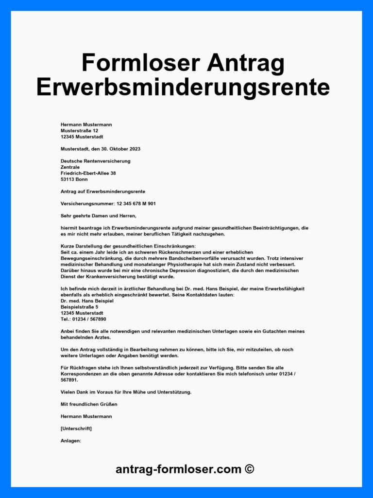 Kostenloses Formular zum Hinzuverdienst bei Erwerbsminderungsrente herunterladen – wichtige Angaben bis zum Erreichen der Regelaltersgrenze korrekt ausfüllen und Fristen einhalten.