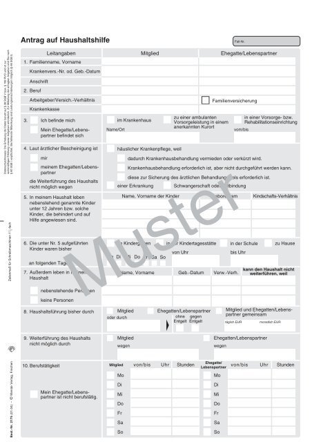 Kostenlosen Antrag auf Haushaltshilfe herunterladen – Formular für antragstellende Haushaltsführende, Ehegatten mit persönlichen Daten wie Name, KV-Nummer, Geburtsdatum und Kontaktdaten.