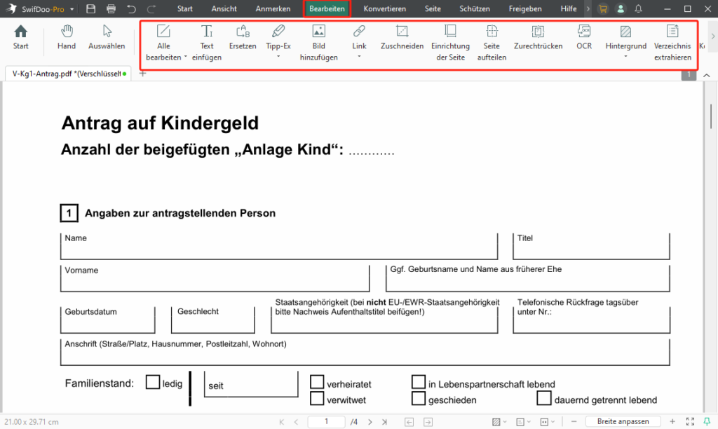 Kostenloses PDF-Formular zum Antrag auf vollen oder halben Kinderfreibetrag über 18 Jahre herunterladen. Einfach ausfüllen und einreichen für steuerliche Berücksichtigung gemäß Zeilen 4 bis 7.