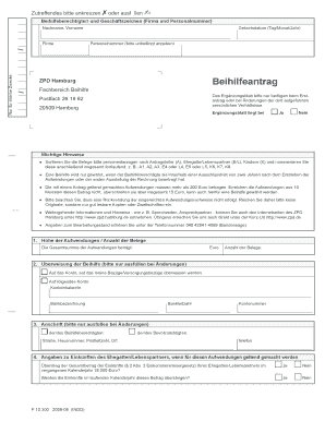 Kostenloses ZPD Hamburg Beihilfe Formular zum Download. Formular ermöglicht die Beantragung von Aufwendungen für eine Person, einfach ausfüllen und Unterstützung schnell erhalten.