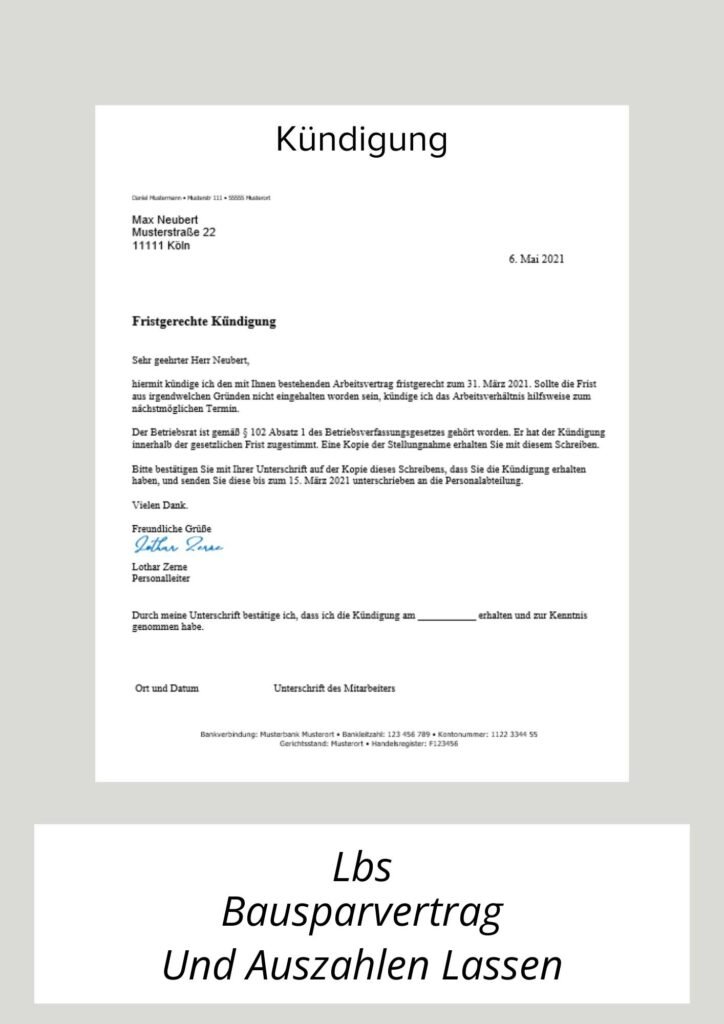 Kostenloses PDF-Formular zum Kündigen Ihres LBS Bausparvertrags herunterladen. Einfach ausfüllen und einreichen. Abschlussgebühr bleibt bestehen, Anspruch auf Bauspardarlehen erlischt.