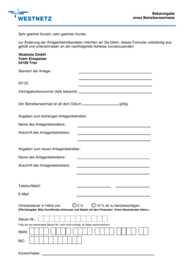 Kostenloses Formular für Betreiberwechsel bei Photovoltaikanlagen herunterladen – alle notwendigen Unterlagen für die Abwicklung und Erstellung der Schlussrechnung inklusive Einspeisevergütung.